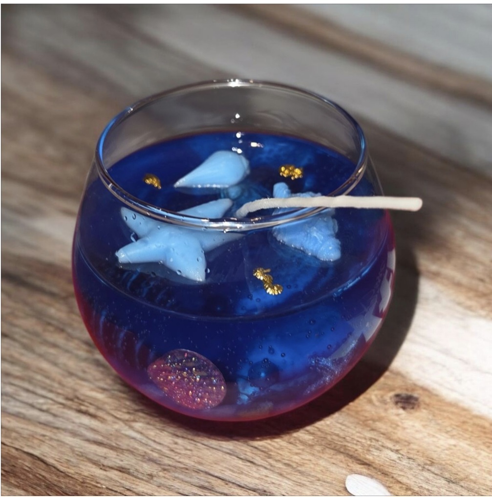 Cada vela está decorada a mano con pequeños detalles marinos como perlas y estrellas de mar, cuidadosamente colocados para crear un acabado armonioso y elegante. Más que una fuente de luz, es un elemento decorativo que aporta personalidad y estilo a cualquier espacio.